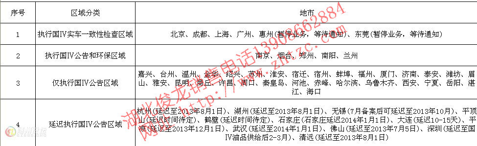 國四標(biāo)準(zhǔn)目前來看,各地實施的情況各不相同。部分地區(qū)沒有任何文件和通知,相當(dāng)于是沒有實施的時間表;部分地區(qū)傳言從莫某時候開始實施,但沒有官方文件;部分地方暫時停辦業(yè)務(wù)觀望上級政策;部分地區(qū)已經(jīng)有了明確的時間表從某年某月開始正式實施;部分地區(qū)已經(jīng)正式實施。正式實施的區(qū)域政策又各不相同:有些地方只是限制上戶手續(xù);有些地方需要車輛一致性;部分地方還需要做車輛一致性測試。下表可以大概看到目前各地已經(jīng)出臺政策的區(qū)域的詳細(xì)要求: